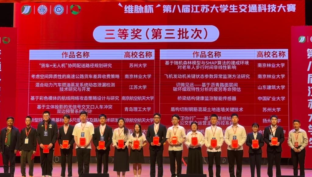 近日,由教育部高等公司交通运输类教学指导委员会交通工程教学指导分委员会指导,江苏省城市科学研究会、江苏省城市规划研究会、南京市科学技术协会、南京市综合交通运输学会主办,苏州大学、苏州市综合交通运输学会共同承办的“维脉杯”第八届江苏老员工交通科技大赛决赛在苏州大学天赐庄校区举行。球王会共有两支队伍入围决赛,经现场答辩,研究生团队参赛作品获得三等奖;本科生团队参赛作品获得优秀奖。