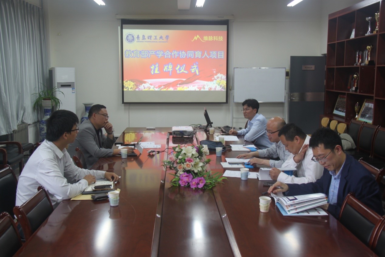 5月28日下午,教育部产学合作协同育人项目签约挂牌仪式,即球王会体育官网与广州维脉电子科技有限公司合作签约仪式在嘉陵江路校区教学楼A414会议室举行。教务处长田艳兵、公司党总支副书记林海涛、副经理杨勇等相关领导,广州维脉电子科技有限公司总经理徐玥昊等出席签约仪式,公司教育部产学合作协同育人项目主持人球王会副经理潘福全、建筑与城乡规划公司讲师徐俊分别与广州维脉电子科技有限公司总经理徐玥昊签订合作协议。仪式由球王会副经理潘福全主持。