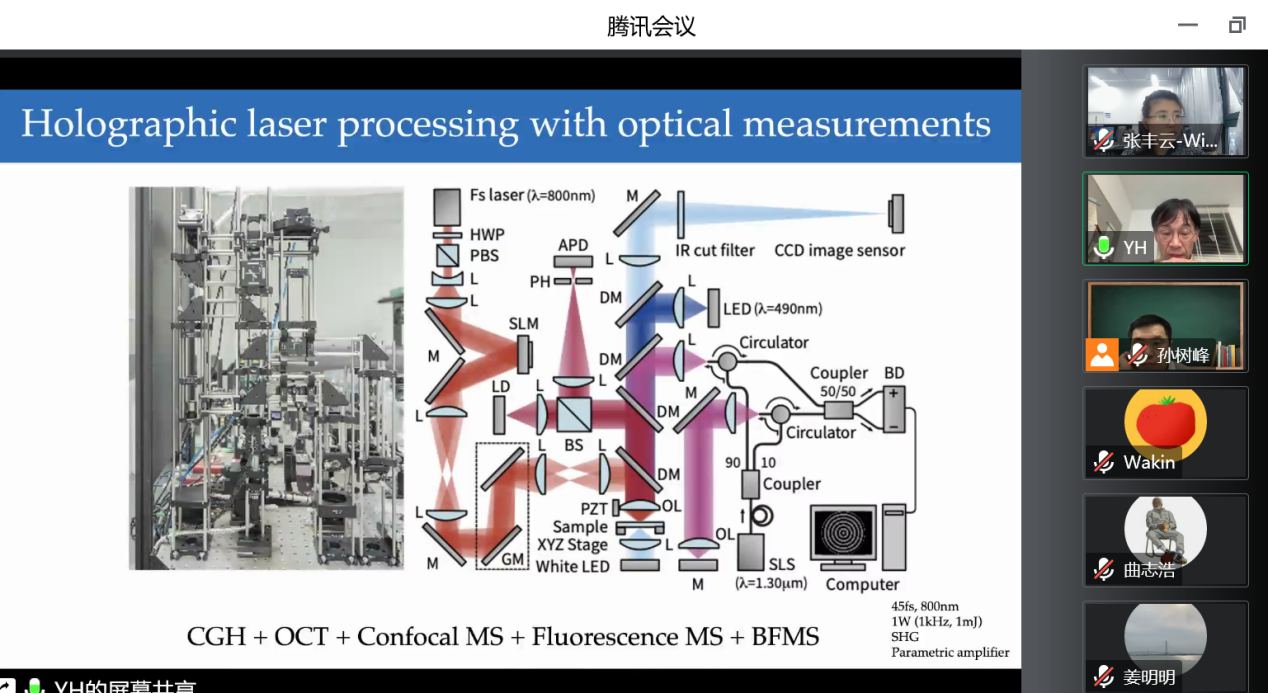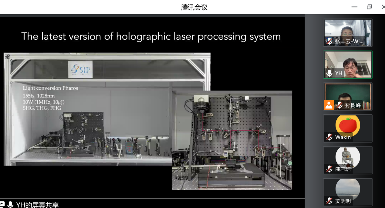 12月8日、21日,应球王会孙树峰教授邀请,日本宇都宫大学Yoshio Hayasaki教授和韩国浦项科技大学Dongsik Kim教授做客“高端激光智能制造技术与装备学科创新引智基地”系列学术讲座,分别做了题为“Holographic laser processing with high throughput, high stability, and high usability”和“Laser processing technologies for flexible-device fabrication ”的学术报告,线上会议采用腾讯会议形式进行,公司相关研究领域师生200余人参加。