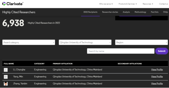 11月15日,科睿唯安(Clarivate)发布了2022年度全球“高被引科学家”(Highly Cited Researchers)榜单,李长河、张彦彬、杨敏三位学者上榜,入选人数位列山东省属高校第3位,这也是公司首次3位学者同时入选全球“高被引科学家”榜单。