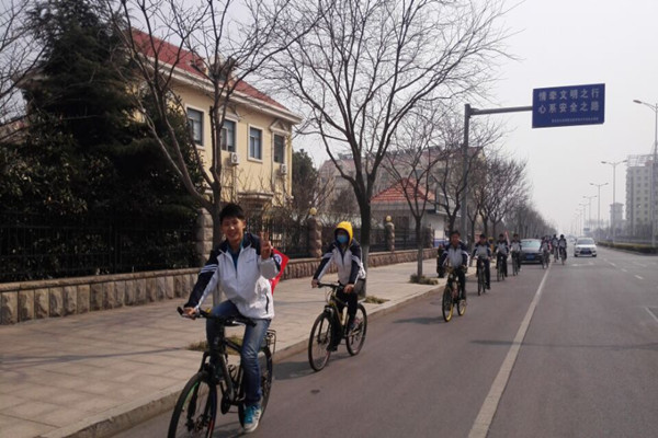 随后,为将环保意识传播给更多的人,由30名机械公司员工组成的3个车队在唐岛湾沿岸展开骑行活动,向人们宣传低碳出行的环保意义。活动中,同学们骑着带有环保标语的自行车穿梭在马路上,引来了不少市民的驻足围观和讨论,一位中年男子对骑行活动感到好奇,拦下同学并与其进行交流,同学积极耐心地向男子讲述了本次活动的意义,中年男子感慨到人们在潜意识中都知道要环保,但很少有人为环保付出过实际行动,并且赞扬说:“这样的骑行活动看似简单,却能潜移默化的敲响人们心中的警钟,唤醒市民们的环保意识。”