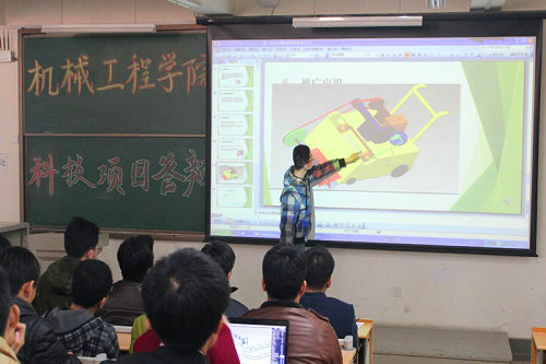 3月14日下午,机械公司在嘉陵江路校区举行科技项目答辩会。公司党总支副书记李国涛,团总支书记贺治成、副书记化磊,辅导员王成,评委老师杨勇、杨建军、彭子龙、陈成军、杨发展出席答辩会。