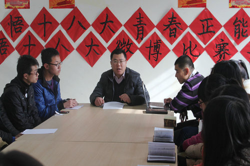 会上,化老师首先简要说明了校团委“礼献十八大”首届微博比赛的内容、意义及比赛细则,听取了各班团支部的微博比赛前期进展情况和遇到的困难与问题等情况汇报。随后,材料112班、机械115班团支书做典型发言,就本班团支部微博比赛宣传发动、开展情况等交流和分享了先进经验和做法。最后,化老师针对本次比赛向各班团支书提出几点要求:一、“凡事预则立,不预则废”,各班团支书要在思想上高度重视本次比赛。二、依托班级、员工会、社团协会等员工组织扩大参与范围,充分挖掘潜力提高微博关注度、粉丝数和转发数;三、做好组织引导工作,广泛发动全班同学,调动一切力量突破瓶颈,争取取得优异成绩。