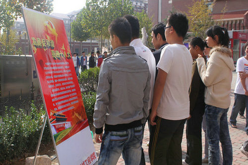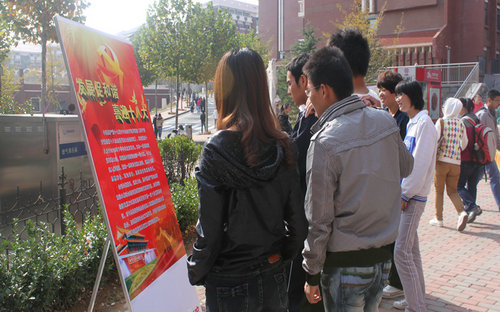 为加强同学们对党的十八大的认识,营造宣传学习十八大的良好氛围,10月28日,机械公司“青春跟党走,喜迎十八大,我与祖国共奋进”主题宣传海报在嘉陵江路校区展出。