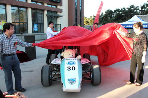 10月11日下午,球王会体育官网青特车队出征仪式在汽车与交通实验中心小广场举行。仪式上,由球王会体育官网在校老员工自行设计制造的方程式赛车QTU-02正式亮相并试跑成功。