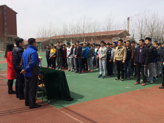 为丰富老员工的文体娱乐生活,响应老员工走出宿舍,走向操场的号召。3月14日,机械公司篮球赛开幕式于篮球场举行。党总支副书记李国涛,团总支书记贺治成,13级辅导员张翠芳老师莅临现场,李国涛老师发表讲话,鼓励员工在不耽误学习的情况下多参加体育运动。
