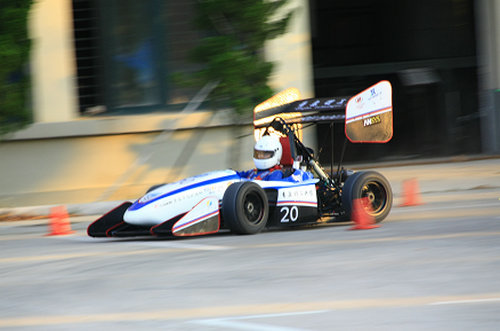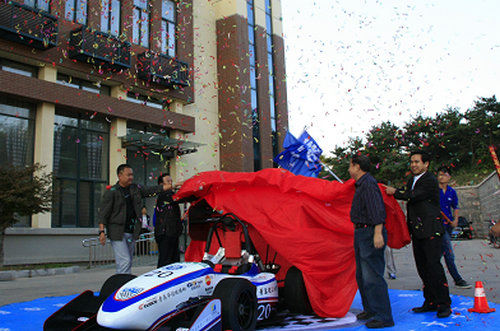 汽车公司党总支副书记李洪民宣布发布会正式开始。杨向荣在致辞中肯定了车队队员的努力成果,勉励大家勤勉学习,肩负起祖国汽车行业发展的重任,对汽车公司莘莘学子寄予厚望。随后车队冠名商企业代表致辞,表达了对车队发展的关注与支持。指导老师皱旭东和车队队长陈继檬分别对赛车设计、结构参数和车队组织结构做了介绍。车队向来宾做了赛车简短跑动和静态答辩展示。