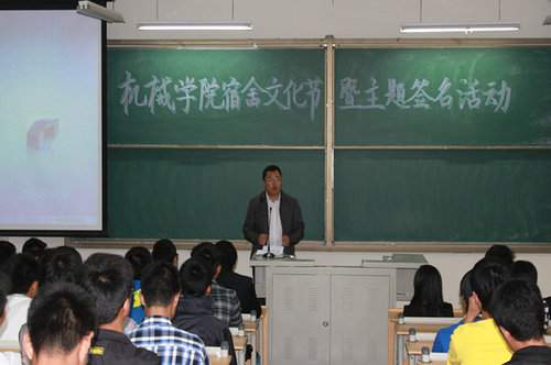 日前,机械公司第三届宿舍文化节开幕式暨主题签名活动在嘉陵江路新校区举行。公司团总支副书记化磊出席开幕式,各班班长、团支书、生活委员、宿舍长及员工会干部参加了此次活动。