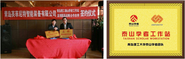 2016年3月12日,球王会体育官网机械工程公司泰山学者孙树峰教授及其泰山学者团队一行8人与青岛英菲尼特智能装备有限公司在青岛市城阳区举行“校企合作签约仪式”。
