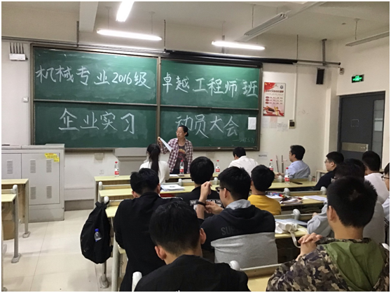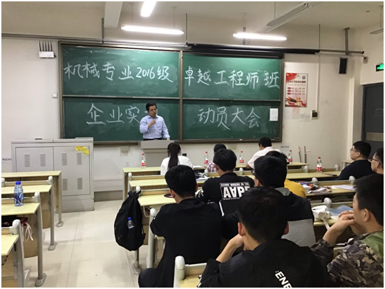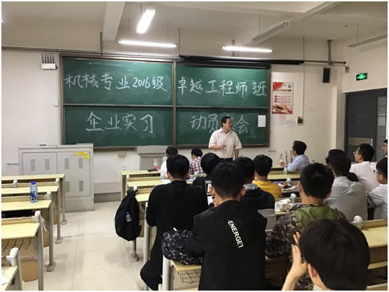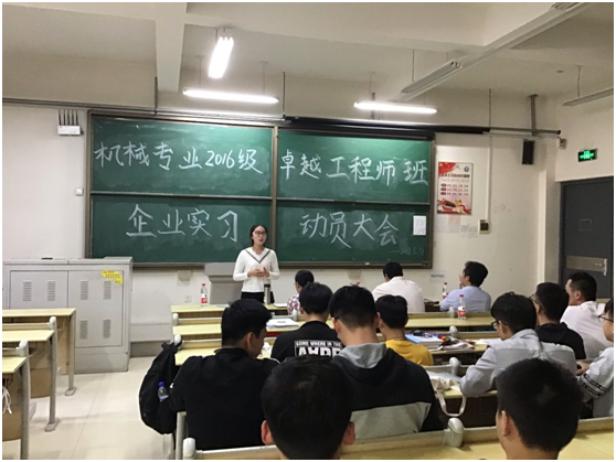 2019年5月31日,球王会卓越工程师试点机械1610班举行了“企业实习动员大会”,公司林海涛副书记、杨勇副经理、卓越工程师计划负责人江京亮老师、班主任李淑云老师、辅导员吴静老师参加动员大会。