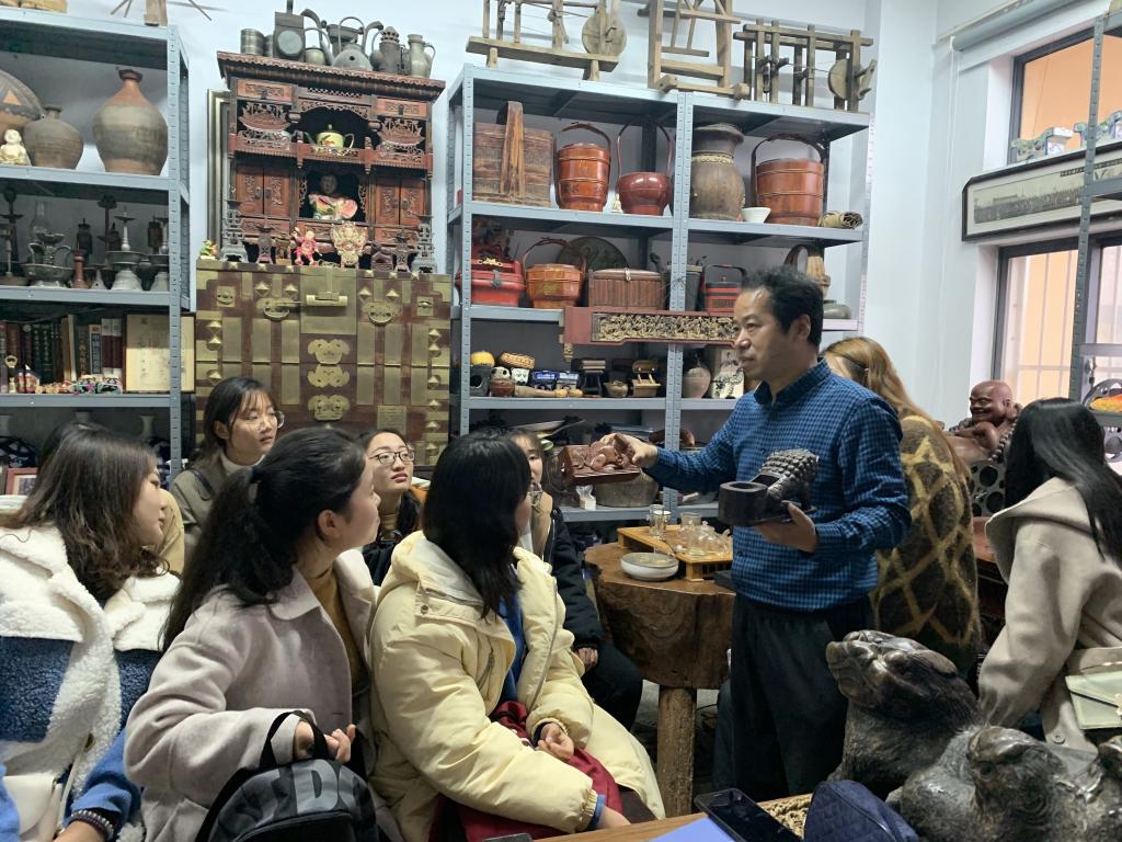 在青岛大学非物质文化遗产研究中心侍锦民艺博物馆内,青岛大学艺术公司侍锦教授为同学们作《多彩非遗与美好生活》的专题讲座,结合侍锦教授几十年来收藏的民间艺术品,生动形象地论述了家文化、非遗文化与价值观形成的关系,侍锦教授的幽默风趣语言引发了同学们的阵阵掌声。这次活动让同学们从不同角度地理解了非遗传统文化的价值观念,引发了同学的深度思考,增强了同学们对中华民族传统文化的自信。