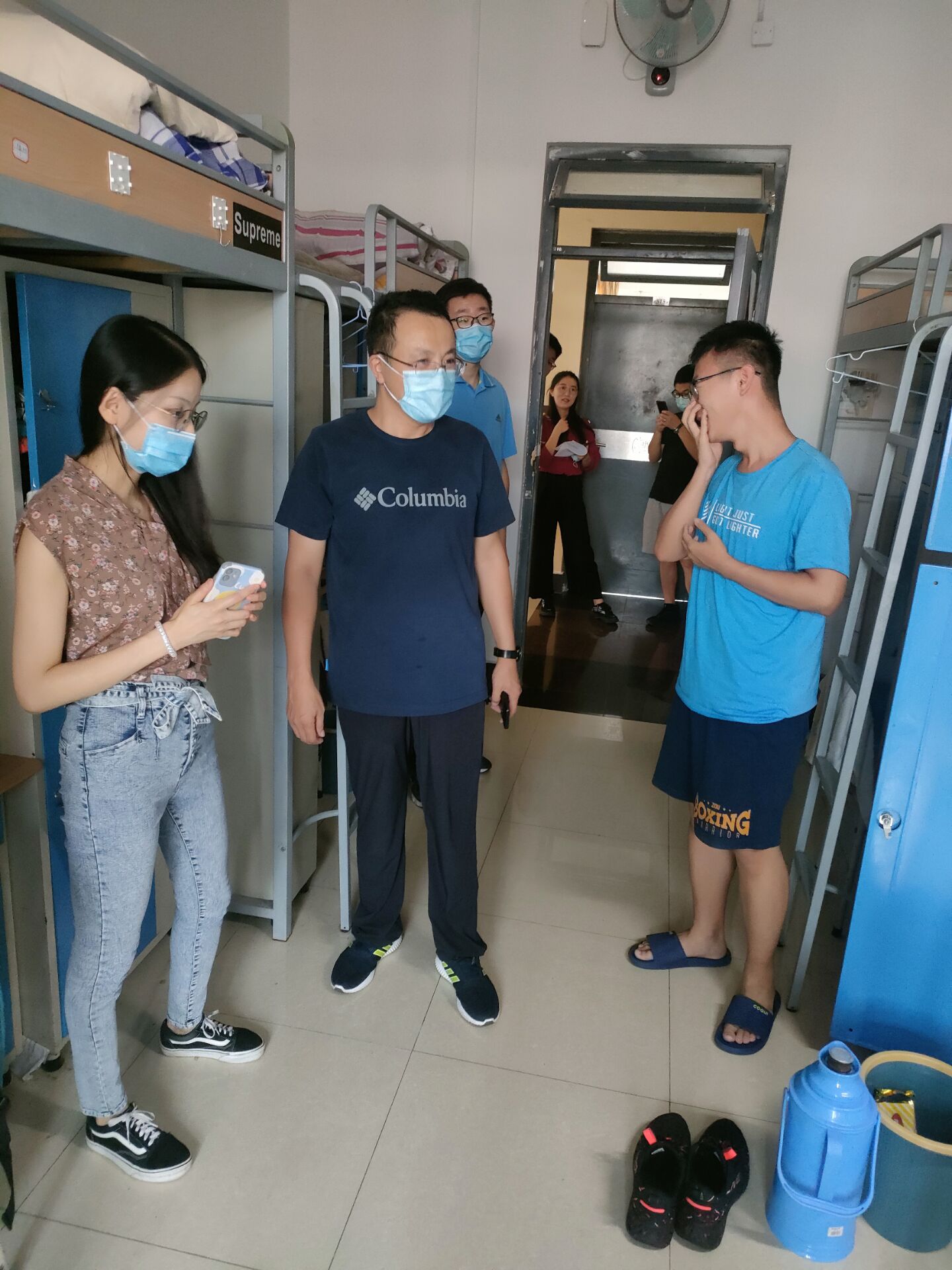 为进一步落实暑假期间员工宿舍安全,增强员工的疫情防控意识,8月3日上午,公司党委副书记、副经理董虎带领各年级辅导员检查走访员工宿舍,开展宿舍安全隐患排查,强化暑期留校员工的疫情防控教育。