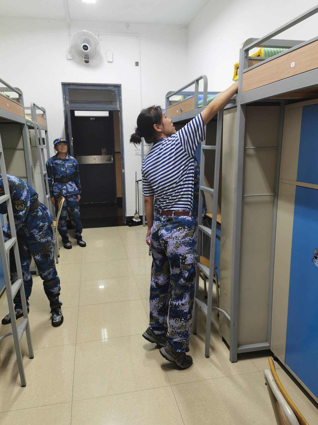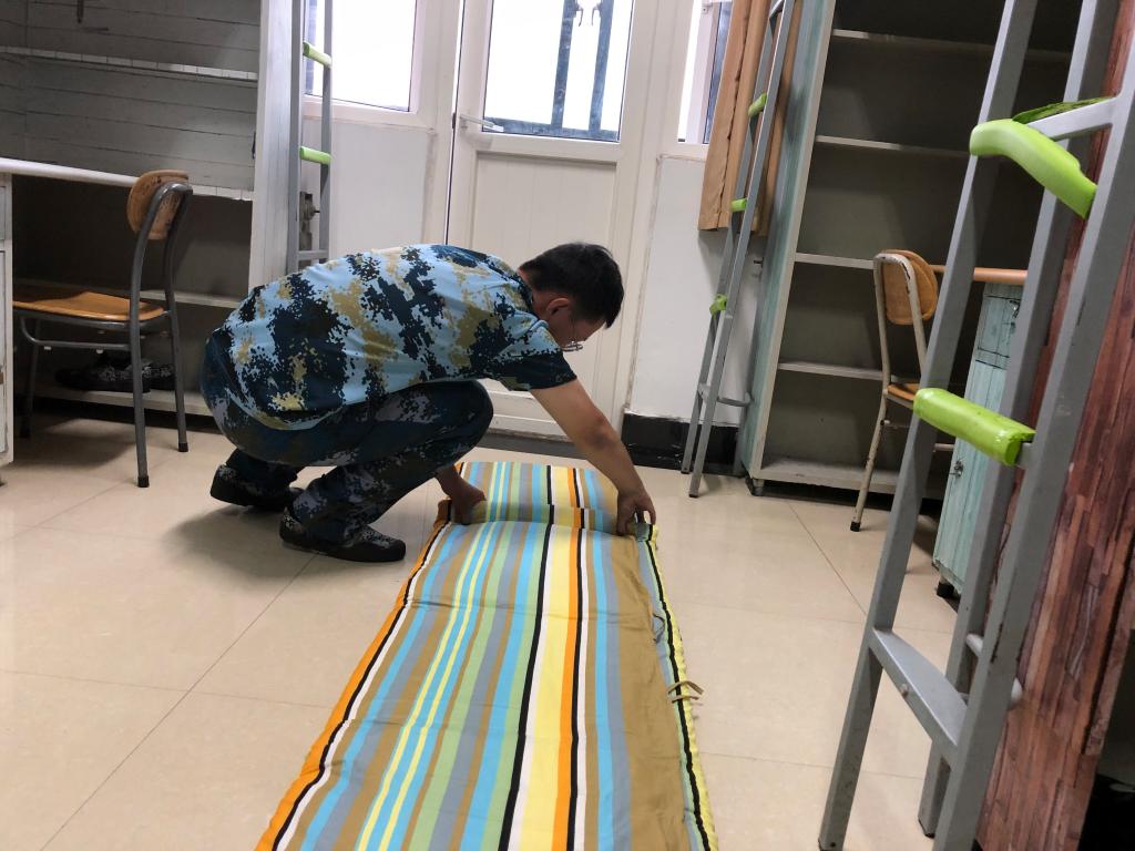 “毛巾统一拿一个衣架挂在脸盆上方的晾衣架上,扫把戳斗统一在灯光开关那里摆放,戳斗前侧与墙角平齐,扫把头高的一侧靠墙,拖把下头与衣柜齐平。”球王会二营长梁教官事无巨细地交代着,教官强调希望可以通过教授内务整理方式来锻新生的毅力,也让他们在自律生活中收获更多。晚训期间,新生军训教官开展积极开展内务检查以及整理指导工作。将内务培训和检查纳入军训日常训练安排,进一步巩固军训成果,规范员工生活习惯,引导员工树立自律意识,养成良好的生活习惯。
