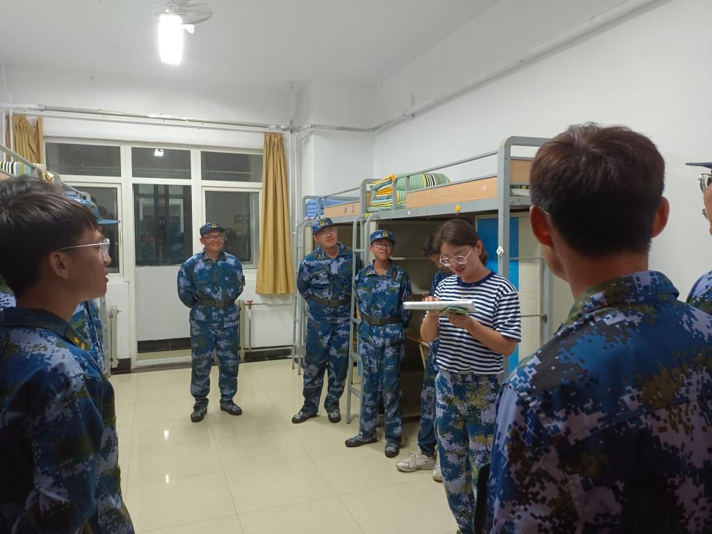 辅导员仔细查看每间宿舍,深入地了解同学们的住宿、学习生活情况,关切地问新生近一周的军训生活是否习惯,并鼓励大家坚持训练,培养不怕苦不怕累的精神。军训是每位同学进入大学的第一课,对培养新生自律意识、提高自我管理能力、养成良好的生活习惯具有重要意义。每位同学必须认真对待训练,严格要求自己。另外,特别提醒同学,要注意宿舍的用电安全,注意个人及宿舍卫生,把握作息时间,克服困难。