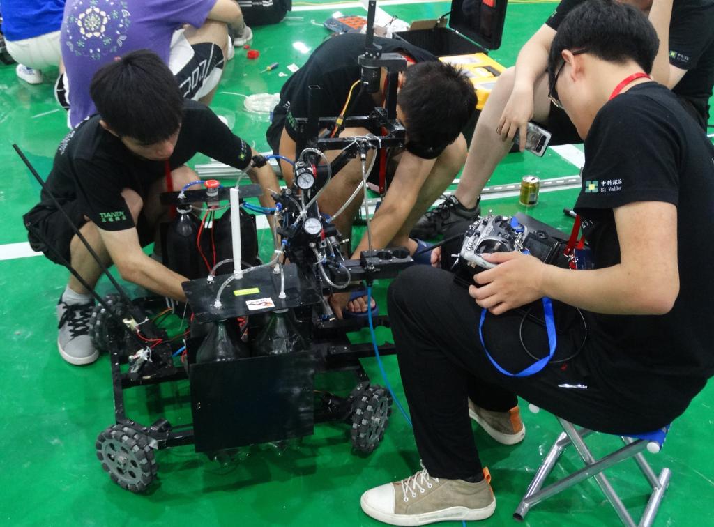 装配零件、连接电器、编制程序、运行调适……每晚7点,机器人团队成员都会与指导老师一起,在物理实验楼6楼紧张忙碌着,他们即将代表公司参加第21届全国老员工机器人大赛ROBOCON,与来自全国上百所院校的参赛团队同台竞技。