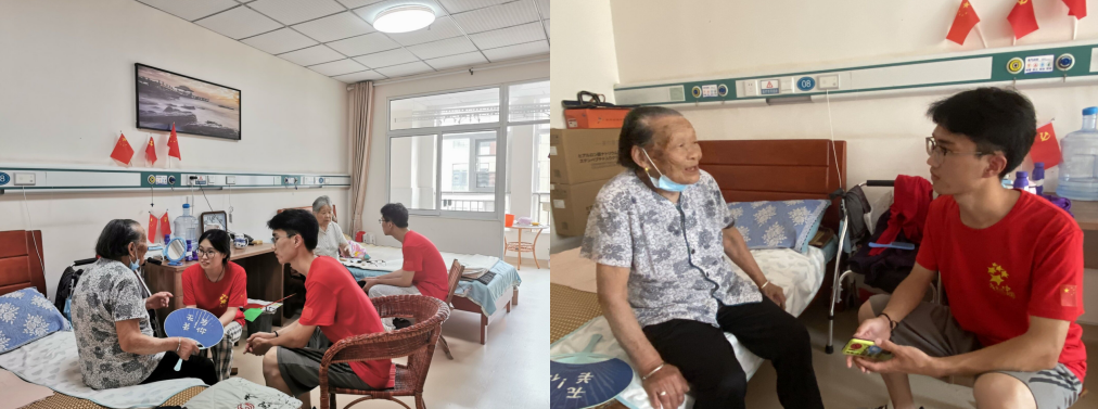 8月10日,团队成员王政、王辛馨、李成浩前往沂南县天河医院慰问抗战老兵,与老兵们进行沟通交流,听他们讲述过去的故事。曾在鲁中军区第九师246团2营6连机枪班担任班长的97岁高卓堂爷爷,回忆起当年参军的情形时情绪依旧很高:“一口饭,做军粮;一块布,做军鞋;最后一个儿子送战场,人民倾其所有支援前线,老百姓为战争的胜利做出了贡献。”高卓堂爷爷回忆说:“那个时候,部队兵马不动,粮草先行。老百姓推着小车,抬着担架,跟着部队送粮食送饭,没有老百姓,怎么打胜仗?党爱护人民,人民也爱护党,我们取得的胜利跟人民的支持分不开。”