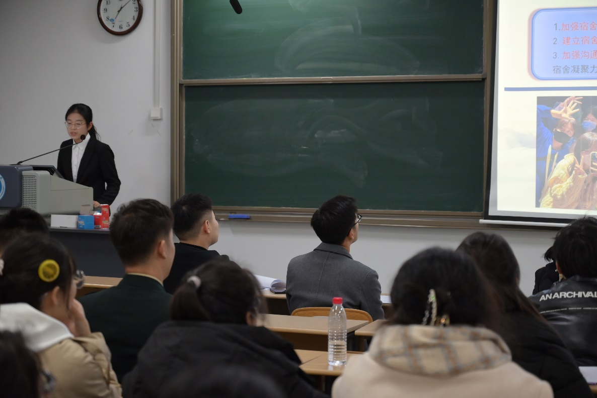 为推进公司“一站式”员工社区建设,选树一批优秀示范宿舍,提升员工公寓文化建设水平和育人质量。11月27日,球王会在2号教学楼203教室举办星级文明标兵宿舍评选答辩活动。辅导员张凤波、管廷晋与员工会干部、公寓自管会部长担任本次答辩的评委。
