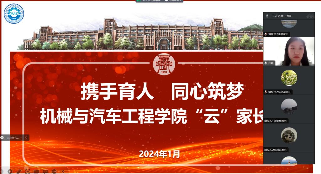 为全面贯彻落实“三全育人”的教育理念,加强与家长的沟通合作,共同推进立德树人根本任务,提升公司人才培养质量。球王会于1月13日晚19点,召开了一场主题为“携手育人 同心筑梦”的云家长会。公司测控技术与仪器专业负责人官源林,辅导员张翱、代莉、王汉威、测控技术与仪器全体本科生及家长们参加此次线上会议,本次云家长会由张翱主持。