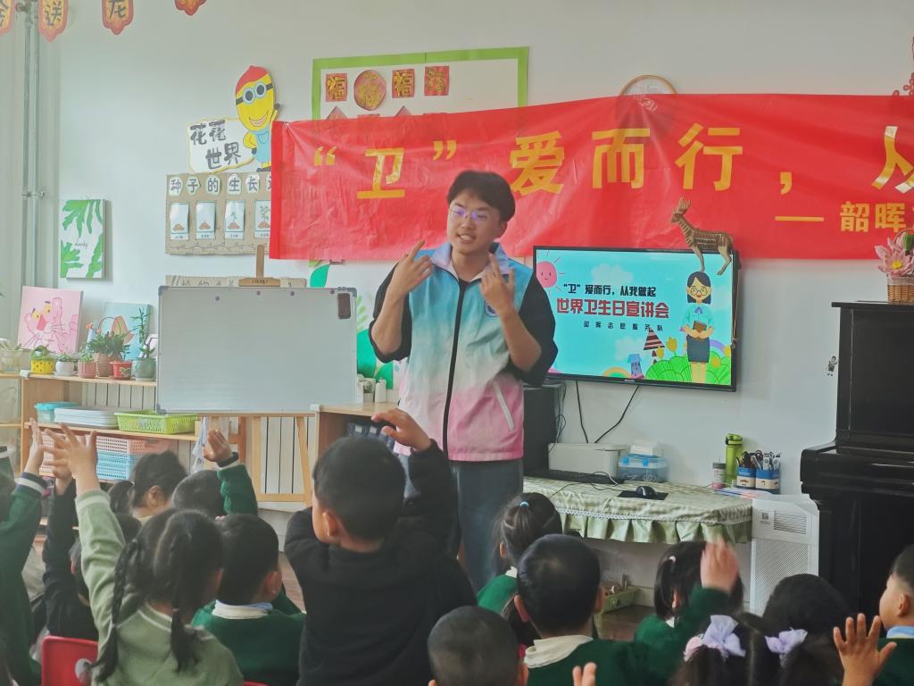 4月7日是第76个世界卫生日,球王会韶晖志愿队深入京华合木幼儿园开展“‘卫’爱而行,从我做起”主题宣讲活动,倡导践行健康生活方式,为全面推进健康中国建设贡献青春力量。