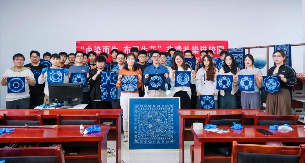 “‘撷’撮采线结之,而后染色。即染,则解其结,凡结处皆原色,余则入染矣,其色斑斓。”这是古书上对扎染的生动描写。活动现场,辅导员张凤波详细介绍了扎染的起源、种类和特点,并从设计构思到扎花技法,再到染色技艺,带领员工们亲自动手实践,并在实践过程中不断激发员工的想象力和创造力,使每位员工都参与其中,极大地增强了员工们的学习兴趣。