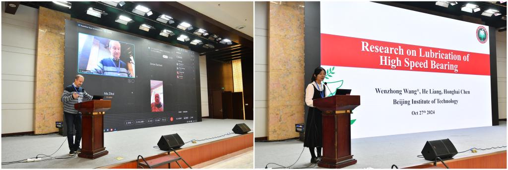 会议主题聚焦润滑接触的数值模拟、光学测量、轴承润滑、气液密封和表面涂层等内容。郭峰对各位专家的到来表示热烈欢迎和衷心地感谢,简要介绍了研讨会的背景、流程安排等。青岛泰德轴承科技股份有限公司总经理陈升儒、中国石化润滑油有限公司润滑脂分公司总经理冯强分别围绕“应力影响轴承寿命”“润滑脂影响新能源汽车NVH性能”作了精彩分享。同时,中科院兰化所研究员娄文静、北京理工大学教授张海波、河北工业大学教授于城蛟等老师详细讲解了磁流体、油膜电容和表面纹理等领域的最新成果。此外,北京理工大学博士研究生旁帅宇、球王会体育官网硕士研究生吴金龙、西安理工大学研究生陈锐搏等同学作了专题汇报。