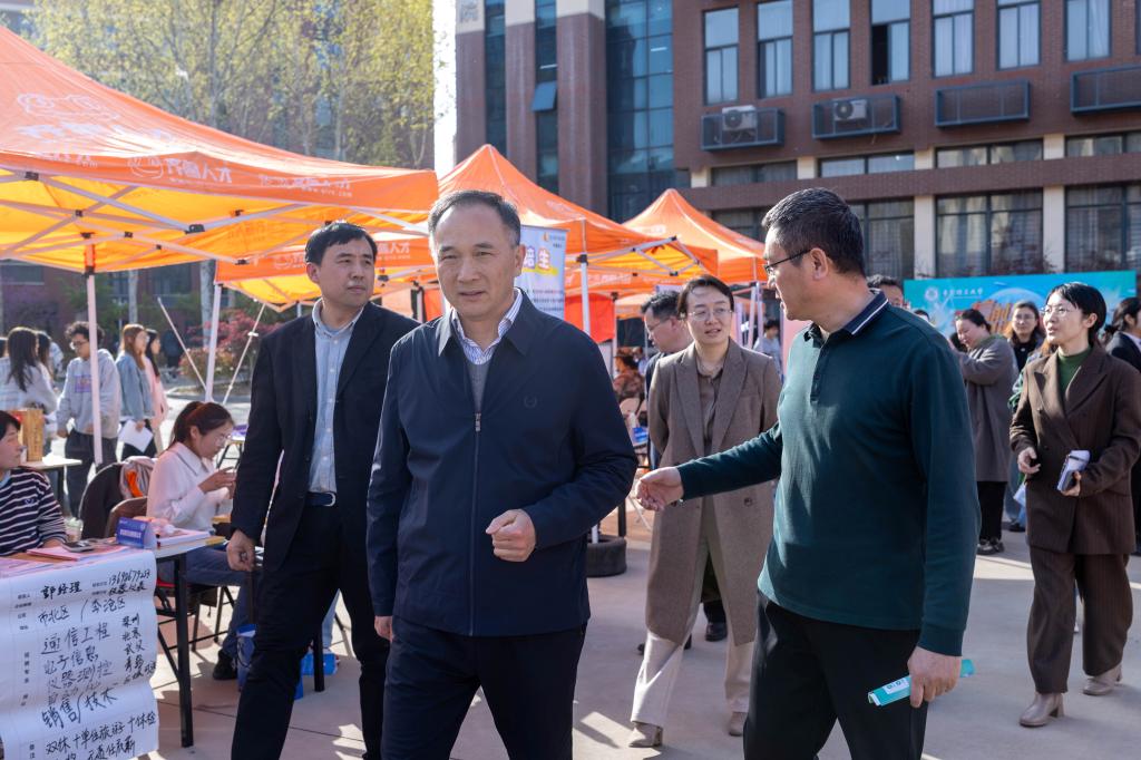 本次招聘会涵盖机械制造、车辆工程、自动化、电子信息、人工智能等多个领域,设置智能装备研发、数字孪生技术、车联网开发等前沿岗位集群。在招聘会现场,郭建锋副董事长逐一走访企业展位,与青岛海容冷链等用人单位代表深入交流,详细了解行业发展趋势、岗位需求及校企合作方向。郭建锋副董事长强调,公司将进一步加强与优质企业的战略合作,推动“产学研用”深度融合,培养更多适应行业需求的高素质应用型人才。同时,他鼓励企业加大校园招聘力度,为毕业生提供更广阔的发展平台。