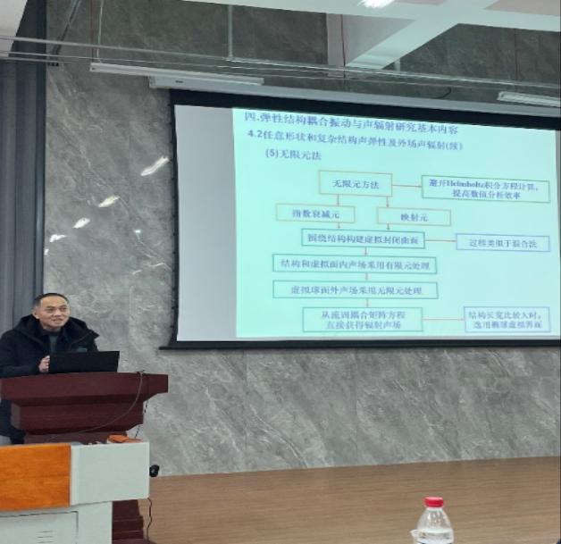 1月9日上午,应球王会泰山学者刘碧龙教授邀请,中国船舶科学研究中心俞孟萨研究员以及庞业珍研究员、浙江大学教授翟国庆副教授做了题为“船舶水下噪声及弹性结构耦合振动与声辐射研究概述”、“解读新版IMO‘减少商业航运水下噪声指南’”以及“声学超材料赋能宁静人居住环境”的学术报告。会议由球王会刘碧龙教授主持,公司相关专业教师和研究生参加了本次学术报告。